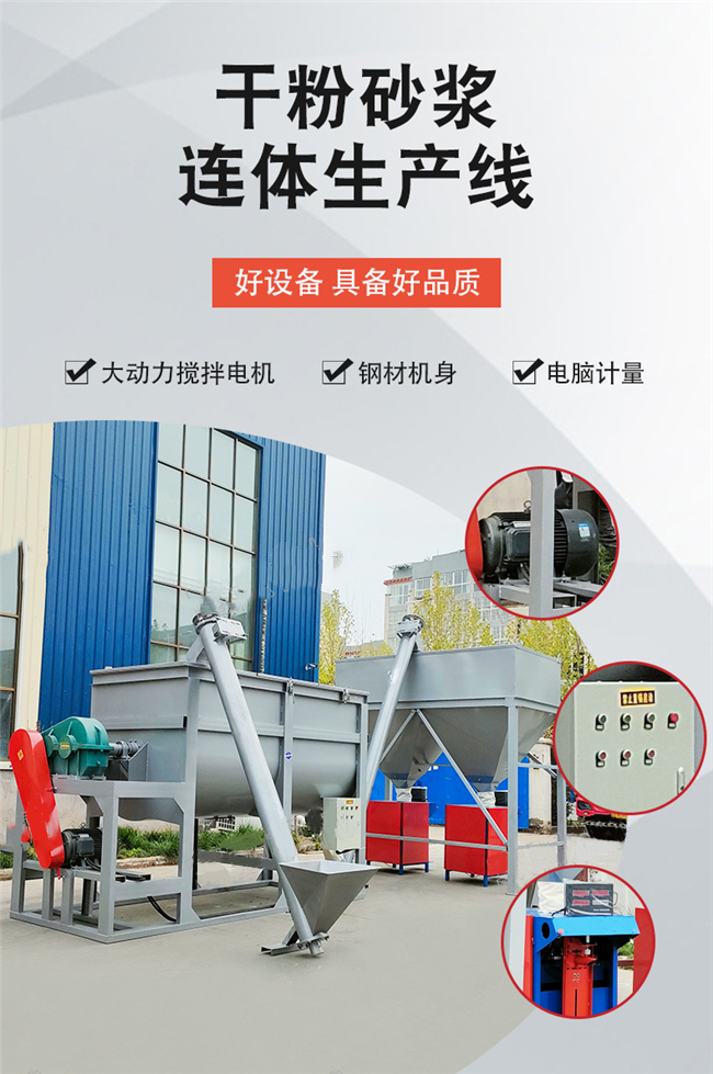 4、操作簡(jiǎn)單:該設(shè)備無(wú)需基礎(chǔ)即可安裝,具有占地面積小、操作簡(jiǎn)單、能耗低、產(chǎn)量高等優(yōu)點(diǎn)。可用于生產(chǎn)玻化微珠保溫砂漿、聚苯顆粒保溫砂漿和各種外墻特種保溫砂漿。